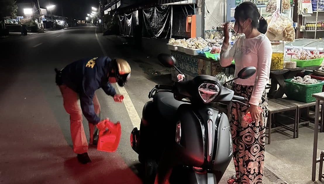 งานสายตรวจ สภ.ขุนยวม ได้ช่วยเหลือประชาชนน้ำมันรถจักรยานยนต์หมด บริเวณ หน้าร้านศรีสุดา สายตรวจจึงได้นำน้ำมันเชื้อเพลิงมาเติมให้รถจักรยานยนต์คันดังกล่าว สามารถเคลื่อนที่ต่อไปได้
